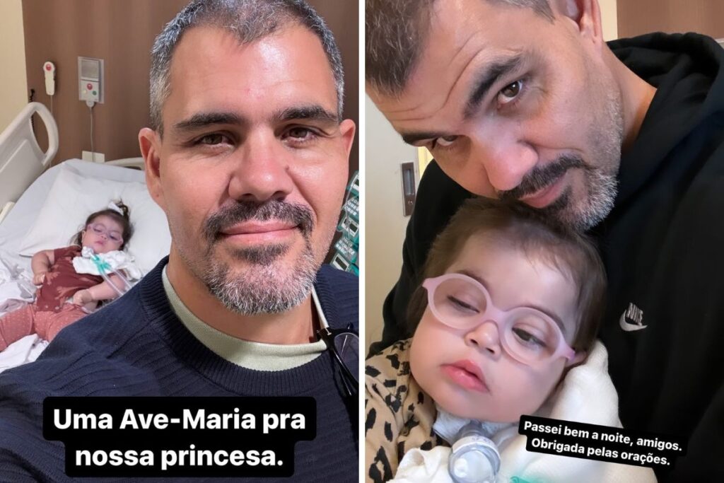 Em dois stories, ele mostrou a pequena em um quarto de hospital. No primeiro, ele pediu uma ave-maria para ela e no segundo agradeceu a corrente positiva em torno da pequena.