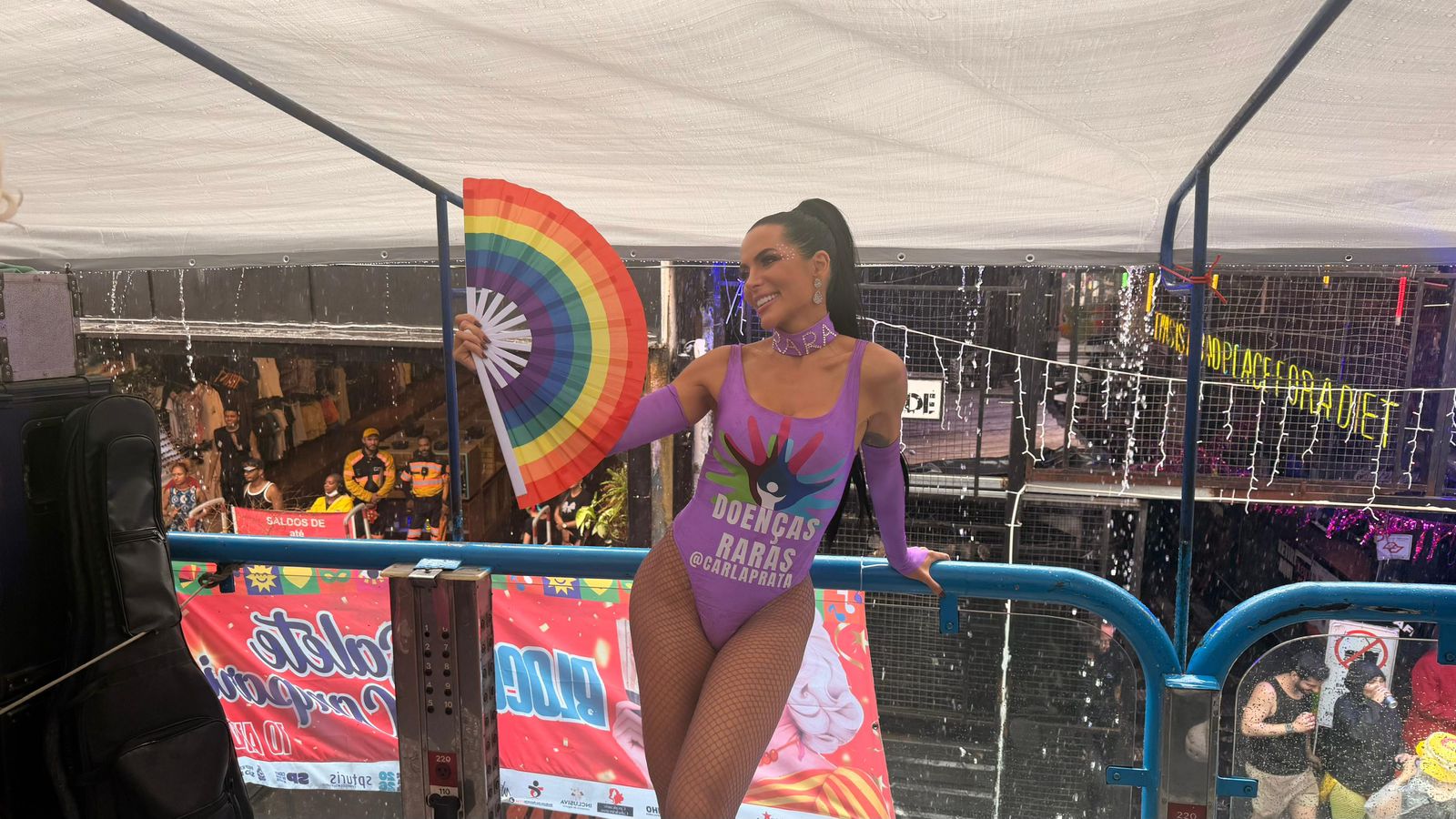 Carla Prata marcou presença, neste sábado, no tradicional Bloco da Salete Campari, um dos mais icônicos e diversos do Carnaval de São Paulo, realizado na Rua Augusta. Para a ocasião, a Rainha de Bateria da Acadêmicos do Tucuruvi escolheu um look especial que uniu Carnaval, identidade e conscientização social.