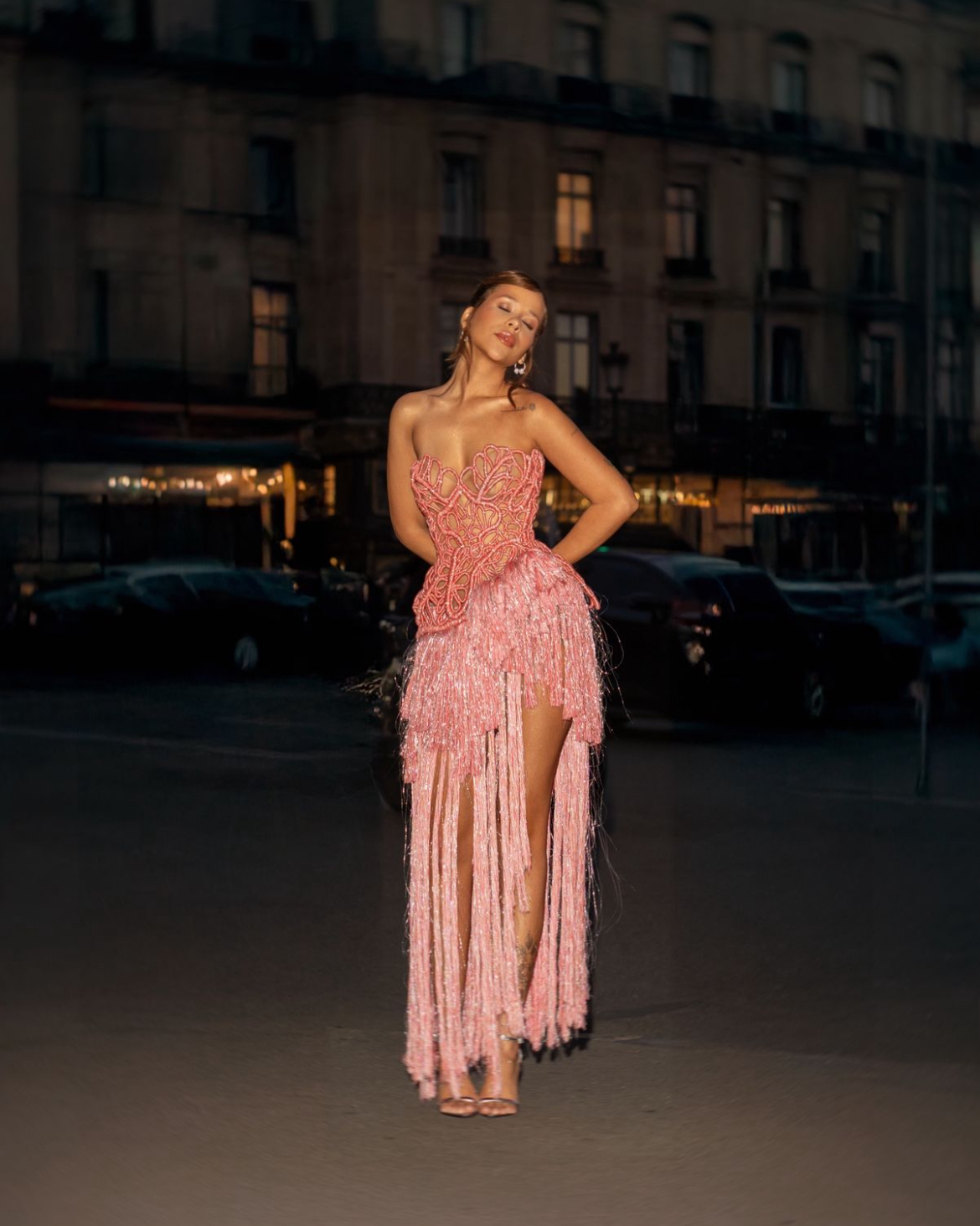Laura Brito prestigia Le Défilé L’Oréal Paris em Paris com vestido inspirado em mariposa