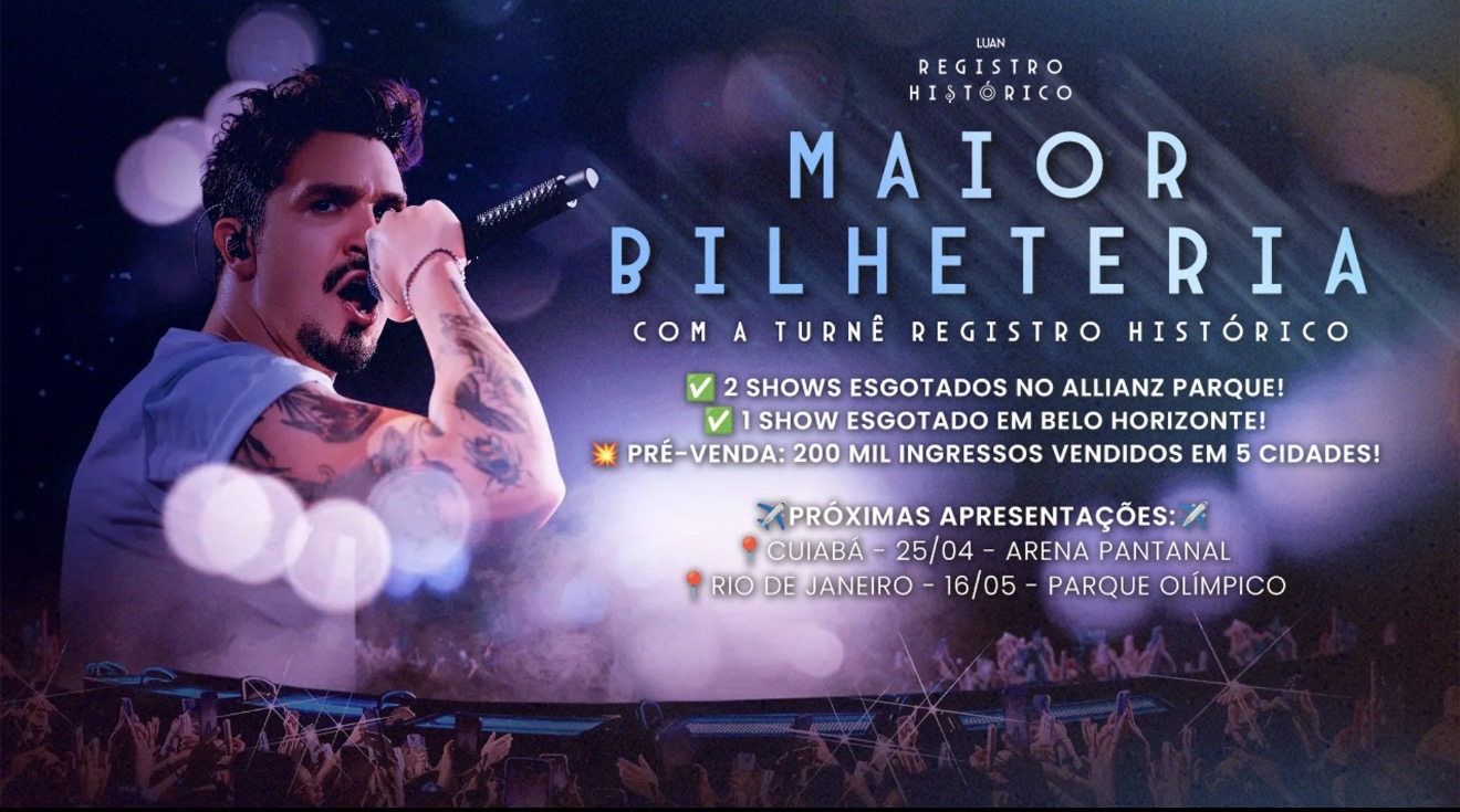 Enquanto Luan celebra com gratidão o seu projeto, o mercado vibra com o pleno resultado. A arte merece aplausos quando o sucesso de um artista é traduzido em estádios lotados e música que ecoa com vozes de fãs acompanhando do início ao fim. Afinal, histórias boas precisam ser registradas. E ao vivo!