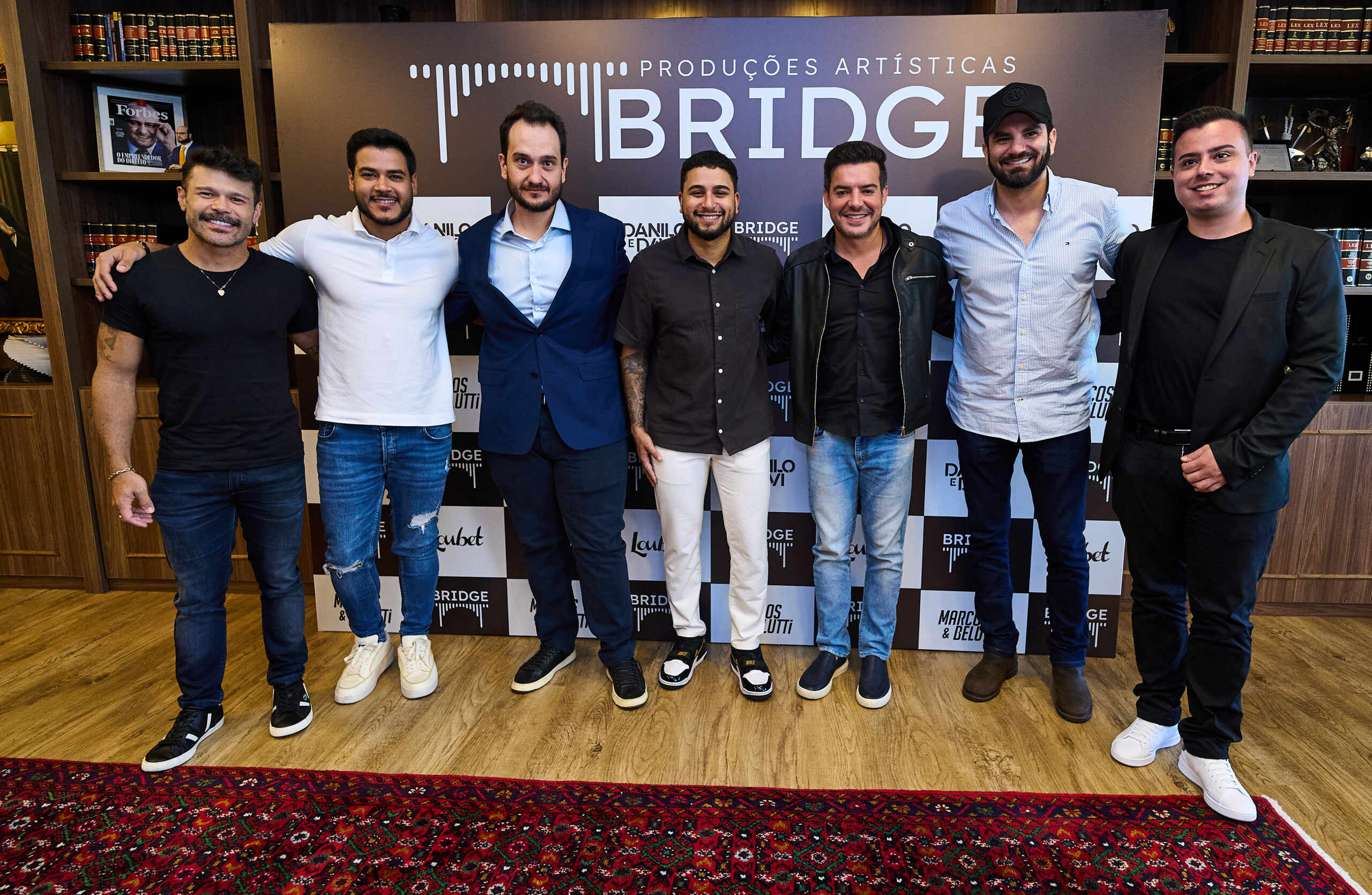 A dupla Marcos & Belutti deu mais um importante passo em sua trajetória artística e empresarial. Nesta terça-feira, 29, os cantores oficializaram a parceria com a Bridge Produções Artísticas, um escritório em ascensão na gestão de carreiras artísticas no país, que tem como sócios Fernando Cavalcanti e Nelson Wilians, além dos managers Carlos Eduardo e Fábio Araújo. O anúncio foi feito em um evento exclusivo, realizado na sede oficial da empresa, em São Paulo, e contou com a presença de toda a equipe envolvida nessa nova empreitada.