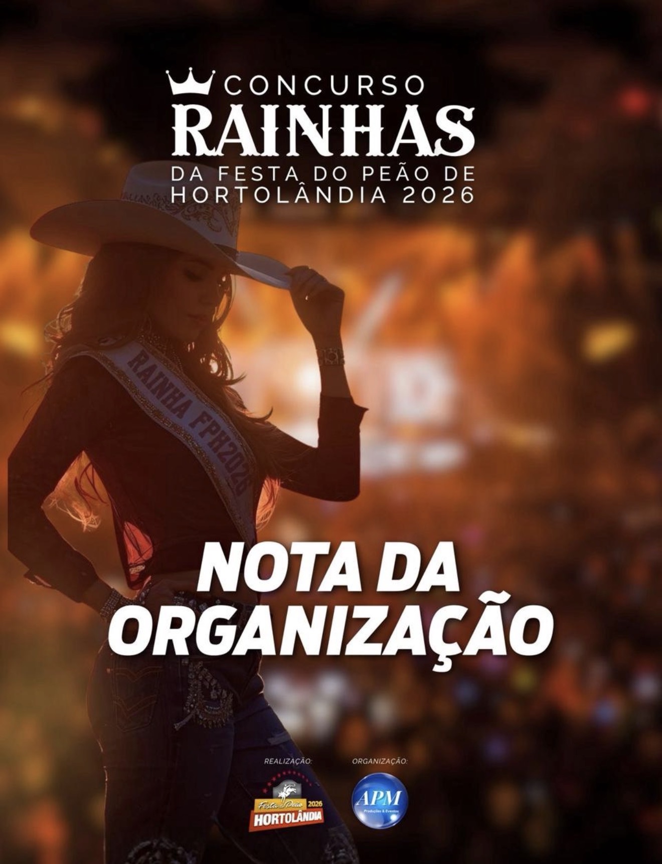 A @apm.producoes.eventos , organizadora do Concurso Rainhas da Festa do Peão de Hortolândia 2026 informa que haverá uma alteração na composição da Corte eleita para esta edição do evento.