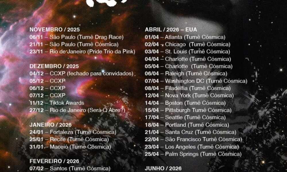 Artista passará por cidades como Recife, Fortaleza, Curitiba, Los Angeles, Nova York e muito mais, levando sua nova era para fãs de todo o país e...